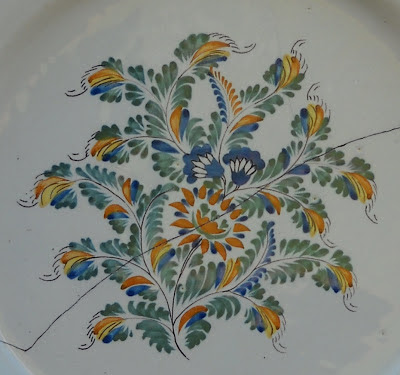 Tal como diz a Maria Andrade, este desenho do "bouquet" é de uma beleza que me agrada bastante, executado com uma mão firme e segura, com traços fortes e cores bem aplicadas. Foi a beleza deste desenho que mais me chamou à atenção, apesar do prato estar perdido debaixo de muitos outros, de forma que mal se conseguia perceber.