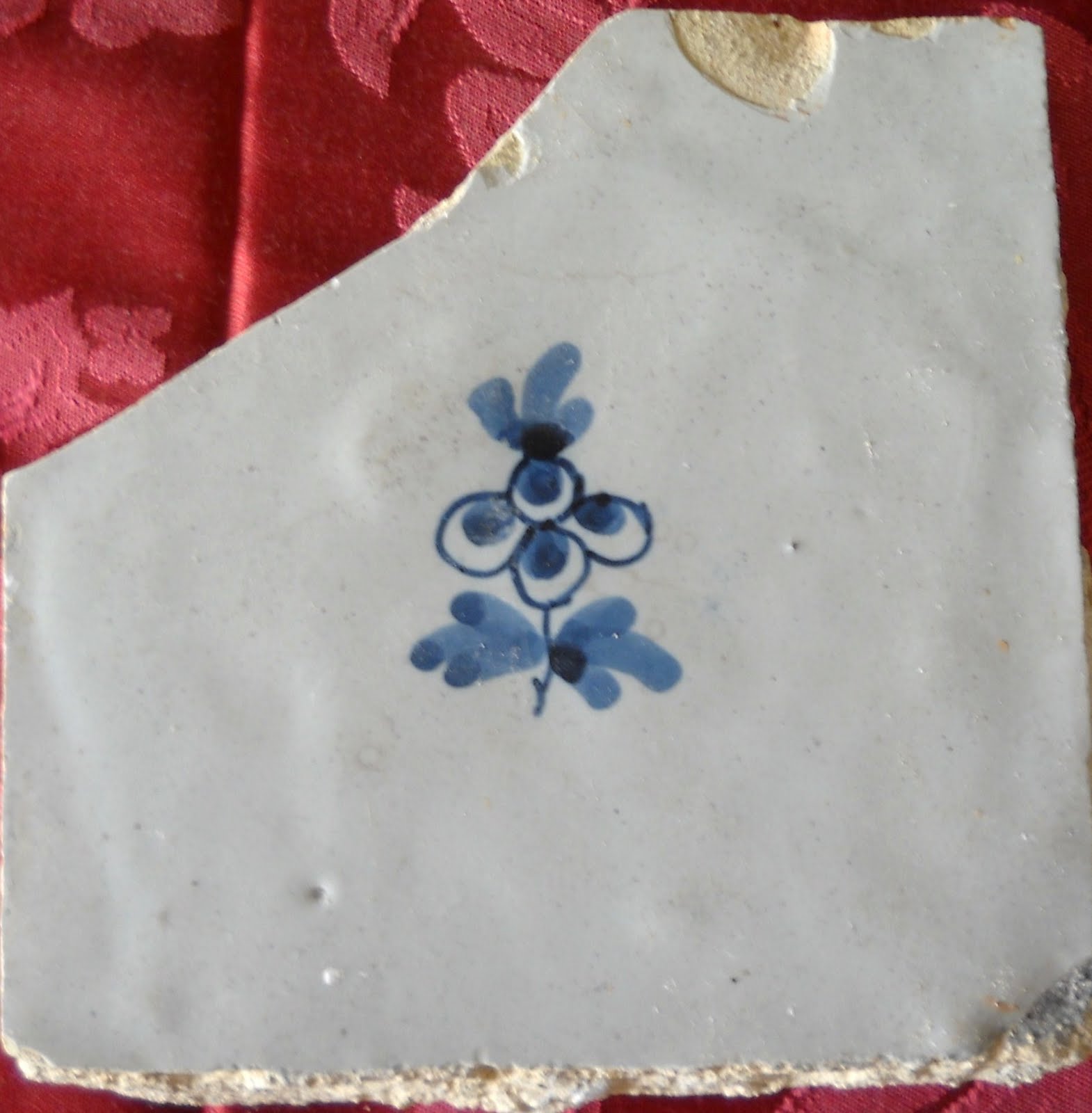 Os contentores das obras da velha Baixa Pombalina continuam uma fonte inesgotável de surpresas para os amantes da azulejaria, que não tem vergonha de esgravatar no lixo Na passada semana apanhei este azulejo muito simples, decorado apenas com uma flor, mas cheio de encanto. Confesso que nunca tinha visto este motivo em azulejos, apenas na loiça de faiança.