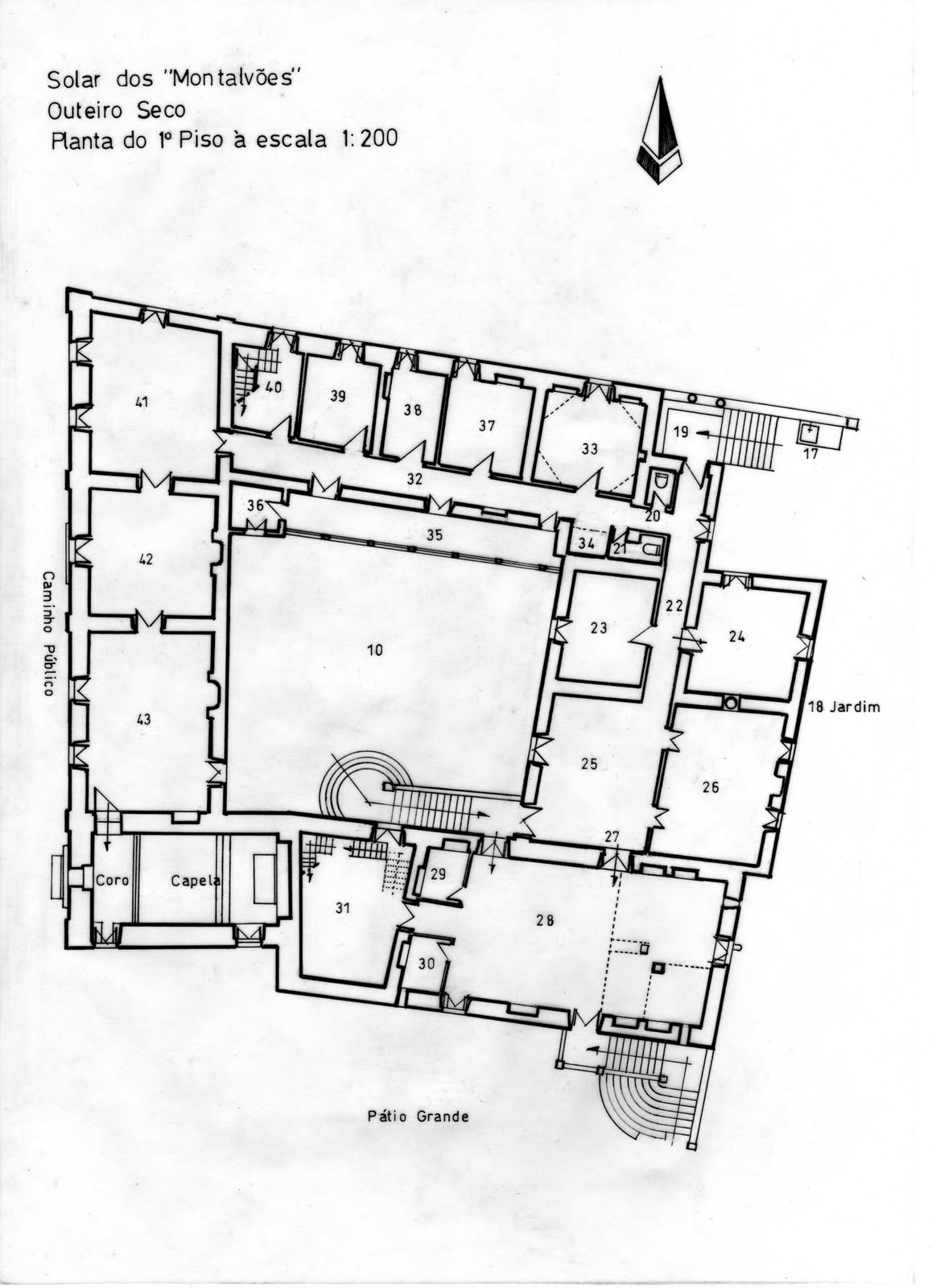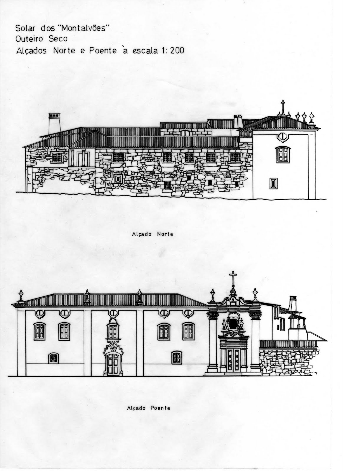 Recentemente recebi alguns pedidos de apoio de estudantes de arquitectura do Porto, pedindo elementos sobre o Solar dos Montalvões, para elaborarem um projecto de recuperação. Ainda que se vá tratar de mero exercício académico, como membro da família Montalvão fico muito feliz por saber que alguém fará um projecto de reabilitação e por isso disponibilizo todas as plantas e alçados do edifício, juntamente com as legendas, que revelam a forma como a casa era utilizada. Julgo que esta informação poderá ser também útil às gentes de Outeiro Seco e Chaves, pois o solar há muito que deixou de ser da família e faz parte integrante do património histórico do Concelho, ainda que esteja votado ao mais triste e desolado abandono.