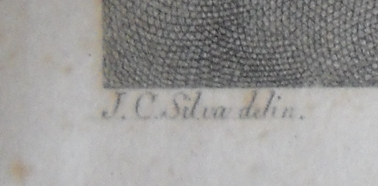 Na obra Subsídios para a história da gravura em Portugal, de Luís Chaves, aprendi que o nome completo deste J. C Silva, era Joaquim Carneiro da Silva (1727-1818) e foi um gravador famoso no seu tempo. Aluno de João Gomes, gravador da casa da Moeda, Joaquim Carneiro da Silva estudou em Roma e Florença e foi director da Academia do Nu. Executou gravuras de desenhos das filhas de D. José (uma vez vi um desenho original de uma delas, da Maria Benedita, à venda na Feira-Ladra, por 40 euros e deixei-o escapar estupidamente), as ilustrações da obra de Manuel Cardoso Carvalho, a Arte da Picaria e ainda Maria Madalena lavando os pés de Cristo, cujo exemplar da Biblioteca Nacional reproduzo aqui.