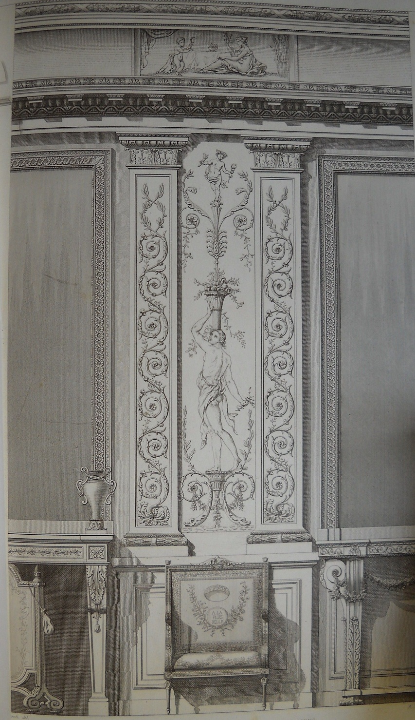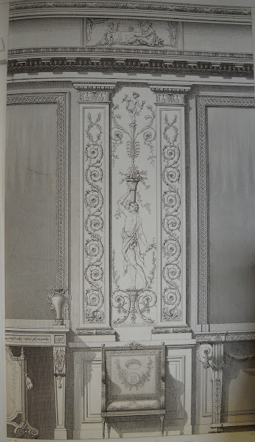Normalmente este mobiliário tinha por pano de fundo salas com boiseries em madeira trabalhada e pintada, que se harmonizavam com os estilos dos móveis. Reproduzo aqui o desenho de umas dessas salas apaineladas, retirado da obra L'Art architectural en France, motifs de décoration intérieure et extérieure / dessinés... par Eugène Rouyer ; Texte, par Alfred Darcel. - Paris : Noblet et Baudry,1863-1866, para vos dar uma ideia do luxo desses interiores.