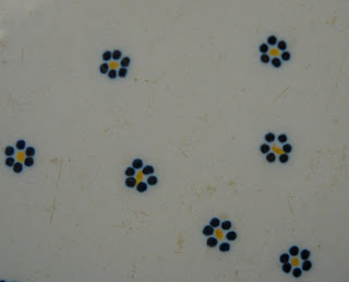 O prato, que eu também já conhecia é lindo e fora do vulgar. Estas florinhas,parecem-me, não ser uma decoração muito frequente, num prato grande como este. Será que é assim? Espero não ser "chata" ao ir colocando algumas dúvidas e constatações nos comentário que vou fazendo:)