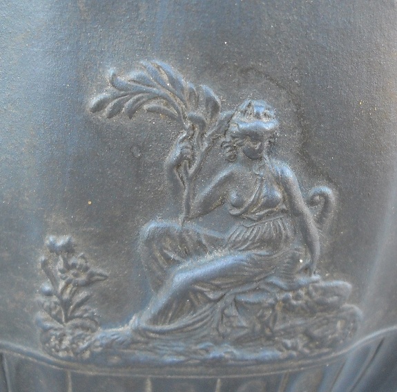 Tenho um livrinho com a história deste Josiah Wedgwood, efetivamente avô de Charles Darwin, um inovador e um fora de série a quem se devem vários desenvolvimentos na cerâmica, não só a introdução do fabrico destes black basaltes, mas também desenvolvimentos no creamware (com as orlas concheadas) e no pearlware e a invenção do jasperware a partir da cópia do Portland Vase. Um dado curioso é que na altura se pensava que estes achados arqueológicos romanos eram de arte etrusca , por isso Wedgwood, muito impressionado por eles, chamou Etruria à aldeia fabril que construiu perto de Hanley ainda no final do século XVIII. Outros fabricantes reproduziram nos seus motivos decorativos cerâmicas da antiguidade a que chamaram etruscas, Etruscan Vases, por exemplo.