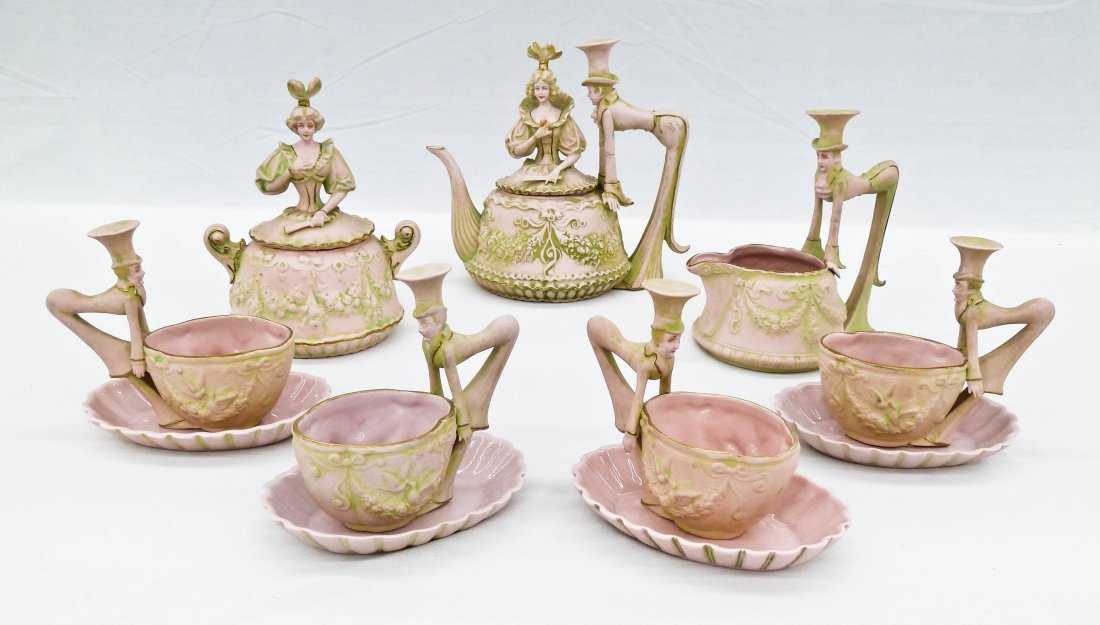 Este ano resolvi fotografar o serviço e tentar apurar qualquer coisa de mais concreto acerca dele e quem estas senhoras e meninas em loiça realmente representam. Através de uma pesquisa de imagens no google, combinada com palavras chave rapidamente encontrei dois ou três serviços à venda iguais, com identificação do fabricante. O serviço foi fabricado pela Schafer & Vater, firma alemã sedeada na Turíngia, em Volkstedt-Rudolstadt e cuja actividade decorreu entre 1890 e 1962. Esta Schafer & Vater produziu mais ou menos de tudo um pouco, mas destacou-se sobretudo pelas suas peças de louça divertidas e insólitas. A suas manufacturas são sempre de muito boa qualidade, com um grão fino, textura aveludada, já que a fábrica disponha de importantes minas de caulino nas imediações.