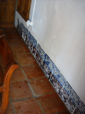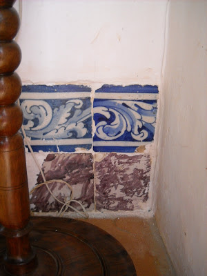 Pessoalmente, não me parece que os azulejos tenham sido deslocados. Se assim fosse estariam colocados às três pancadas e eles estão muito bem dispostos, adequadamente rodeados pelo lambril da roseira. É verdade que no século XIX, ao contrário do que se passou nas centúrias anteriores, os azulejos revestiram sobretudo as fachadas. Mas não só. Também os átrios das escadas, os halls e os próprios corredores, espaços de transição entre o público e o privado merecem decoração azulejar. A minha irmã viveu numa casa do início do século XX, cujo corredor estava revestido com azulejos em relevo e precisamente de uma Fábrica do Norte.