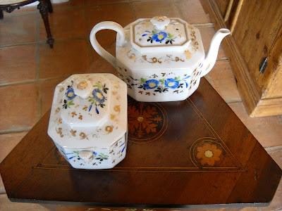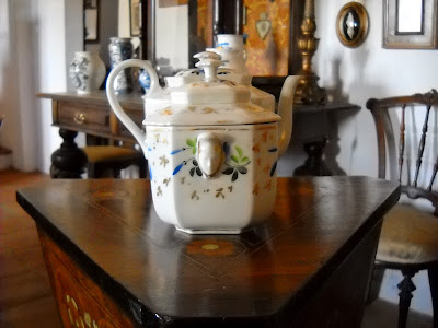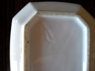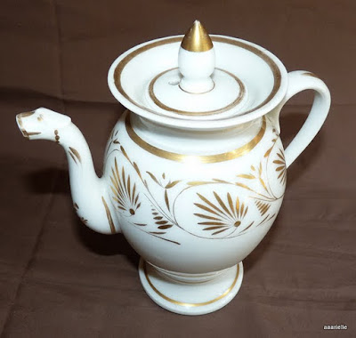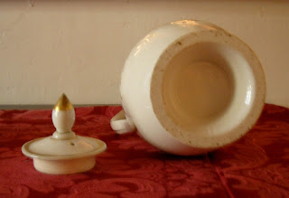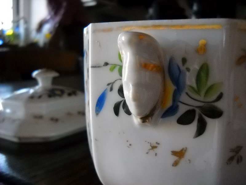 Mas, apesar desta conotação com um certo gosto duvidoso burguês, eu gostei desta menina em biscuit, navegando numa gondola. Achei-a uma peça tão perfeita, tão delicada e o preço era quase dado. Apesar de não ter qualquer marca, será provavelmente alemã. Pelo menos os sites de venda on-line americanos, como por exemplo o http://www.rubylane.com, costumam atribuir a este tipo de figurinhas um fabrico alemão e uma data de produção algures no início do século XX.