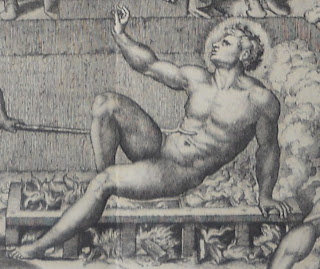 Esta minha gravura terá sido pois imprensa na segunda metade do século XIX, em Paris por Armand-Durand, mas infelizmente não foi feita a partir de nenhum Rembrandt, porque senão, eu poderia vende-la e dar talvez uma entrada para um carro novo, que o meu já começa a dar sinais de cansaço. Terá sido executada para o mercado português e brasileiro da época, que devia justificar monetariamente a encomenda, pois como já sabemos, no século XIX as obras com temas piedosos eram altamente apreciadas nas lusas paragens, ainda que este S. Lourenço tenha um corpo capaz de tentar as mais devotas e os mais tementes a Deus...