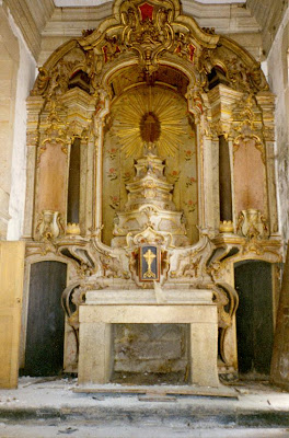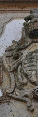 Bem, tudo este arrazoado vem a propósito do brasão que está no Solar de Outeiro Seco, na fachada nobre da casa e de que eu nunca falei e a nossa pobre Isabel, já andava mortificada por causa deste silêncio. Ora a pedra de armas pura e simplesmente não é da família Montalvão. São as armas dos Álvares Ferreira que estão ali representadas. A razão deste facto, que parecerá estranho aos seguidores deste blog, é que o grosso das construções da casa terão sido levadas a cabo pela família Álvares Ferreira, a quem a casa pertencia há muito. Era uma família ligada à cavalaria, conforme se pode ver pelas lojas da casa, onde abundam manjedouras em pedra. Os Montalvões só aparecem nesta casa de Outeiro Seco, em 1746, por via do casamento de uma senhora , Antónia Maria de Montalvão Morais, com um ilustre varão dos Alvares Ferreira, o Miguel Álvares Ferreira. Portanto o brasão que está naquela casa, é anterior a este casamento, 1746, e talvez este nem sequer fosse o seu local original, pois este corpo da casa acusa já as modas de arquitectura da segunda metade do século XVIII ou até mesmo dos finais deste século.