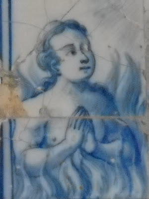 Este singelo e ingénuo S. Sebastião foi comprado na feira-ladra, num episódio que já contei aqui, a uma rapariga da chamada esquerda elegante, que achava os santinhos umas coisas tão atrozmente feias que me vendeu uma meia dúzia deles por um preço tão barato que é até é feio contar.